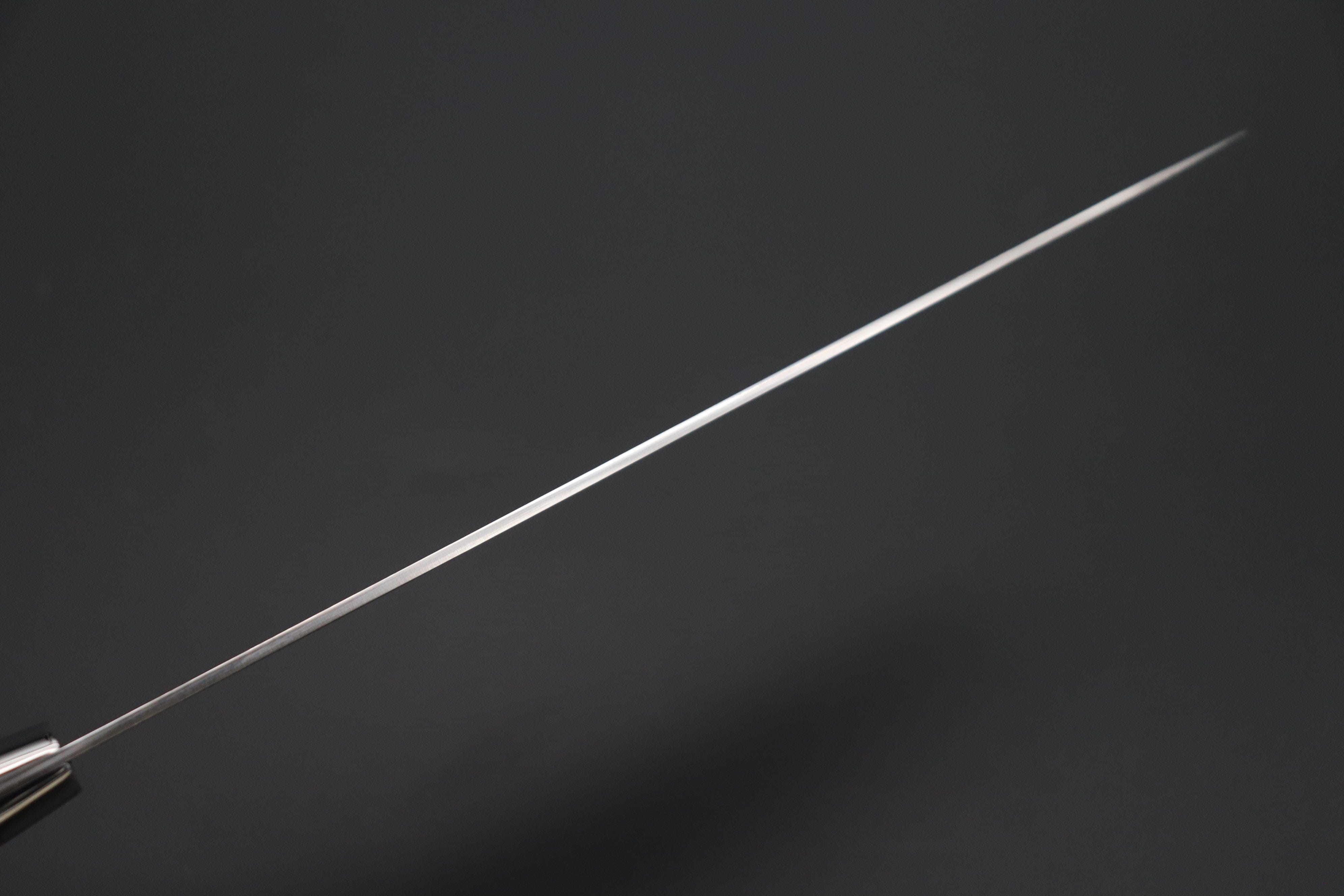 The Gyuto is the Japanese version of the classic Western Chef’s knife. It can be used with a variety of different cutting techniques to achieve a wide range of kitchen tasks and is suitable for cutting the vast majority of meats, fish, vegetables and fruits. The Gyuto is true multi-purpose knife.