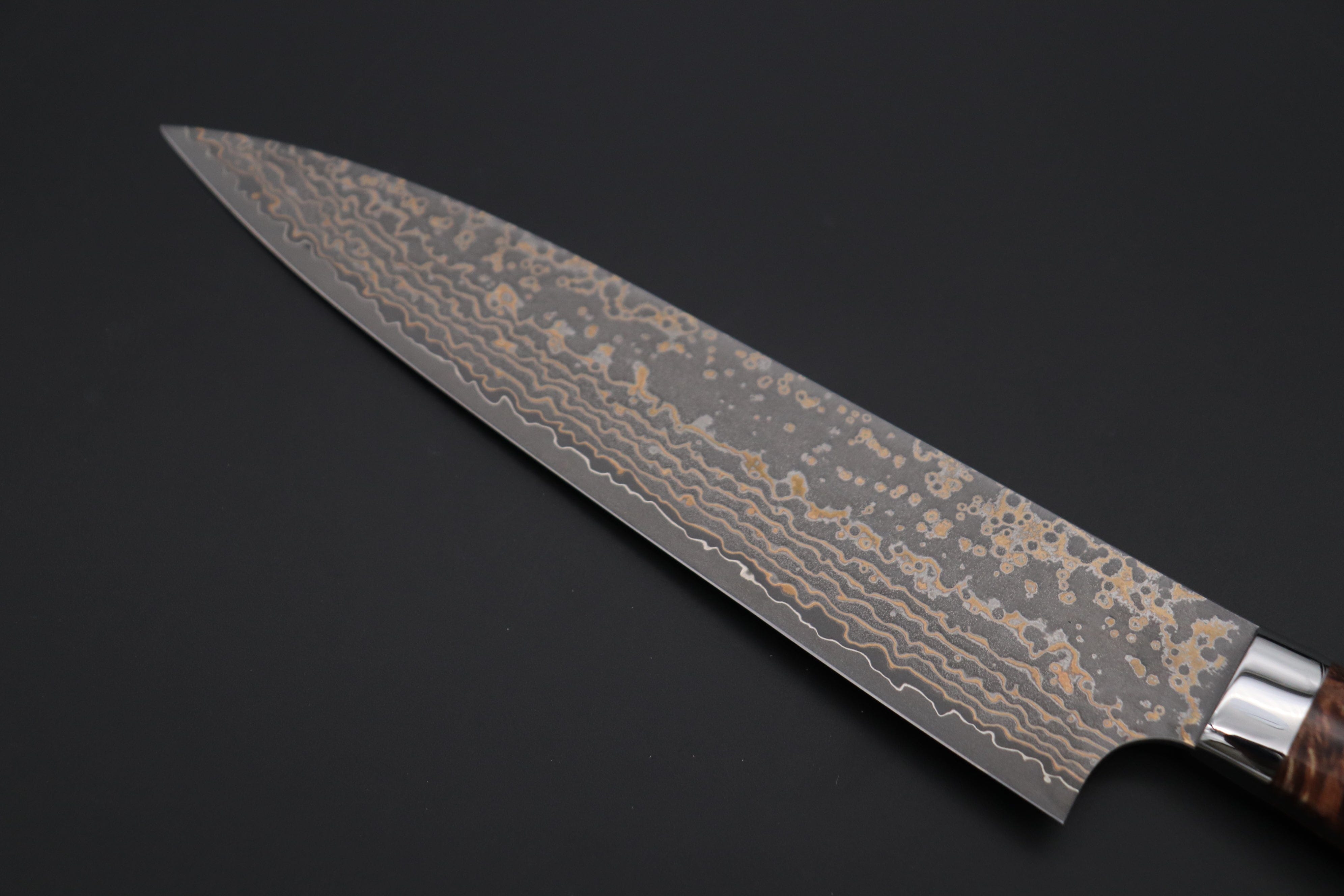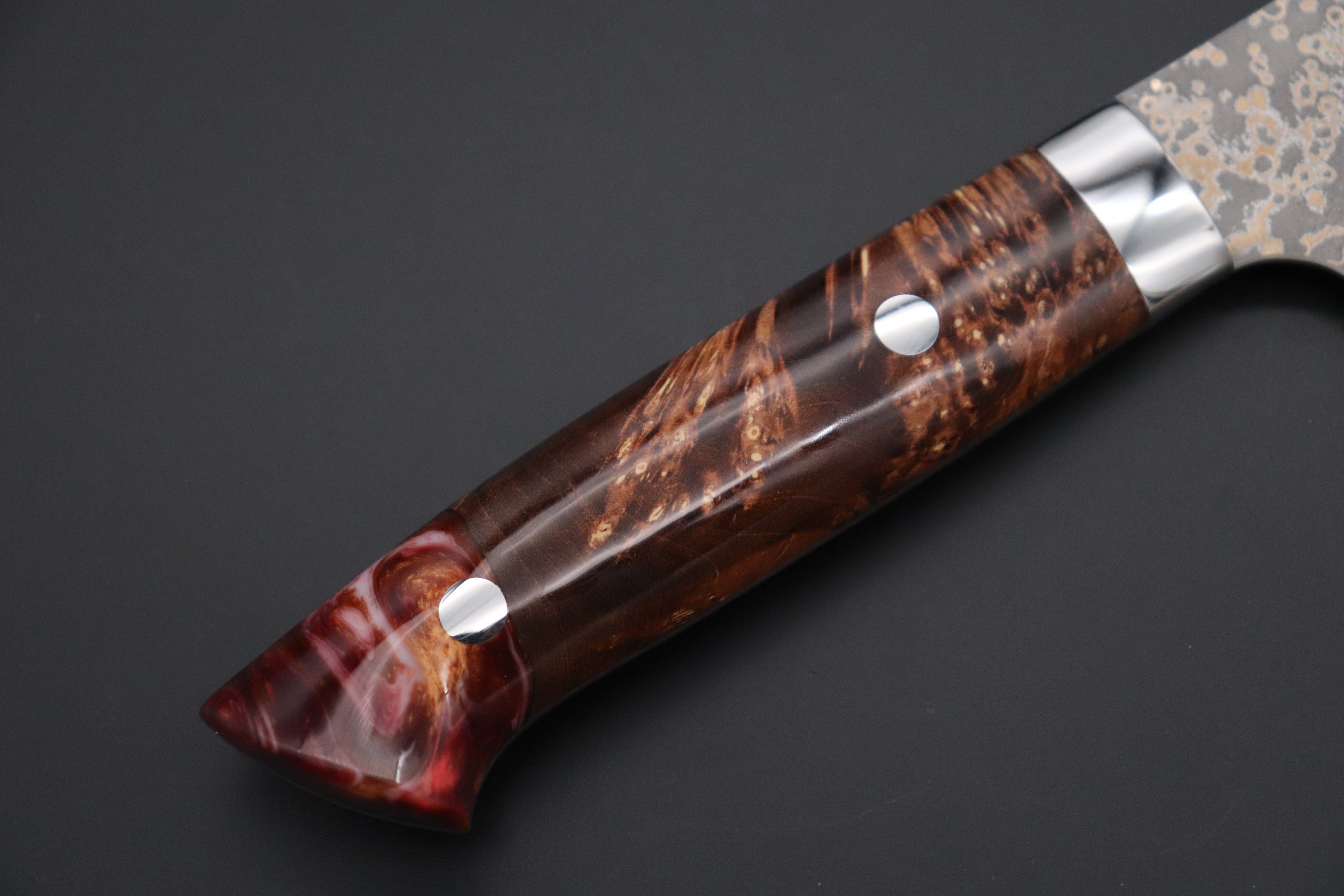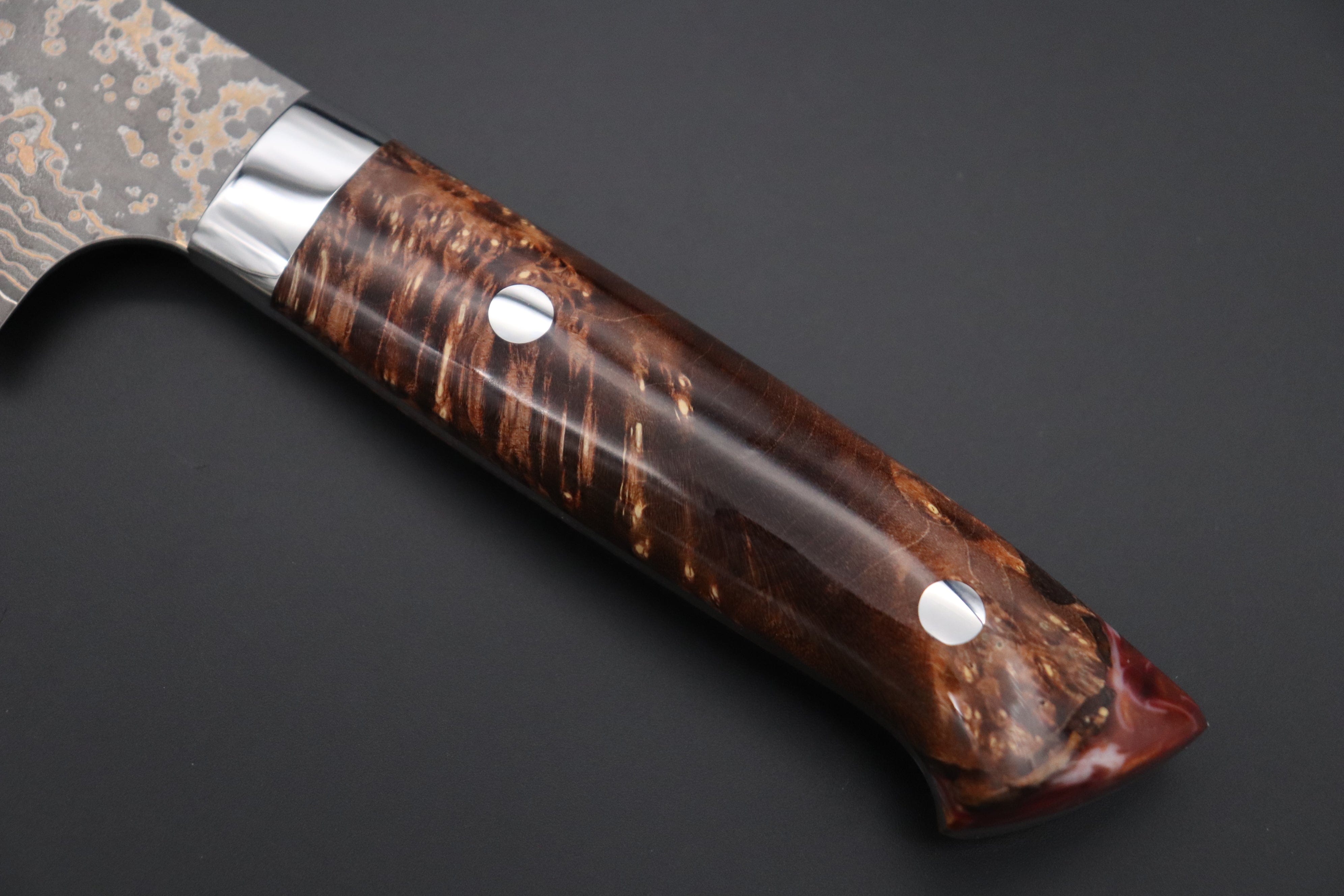 Knife Model: Takeshi Saji SUMMIT ― Limited Edition Custom Series SMT-1093 VG-10W Multi-Colored Golden-Rainbow Damascus Gyuto 210mm
