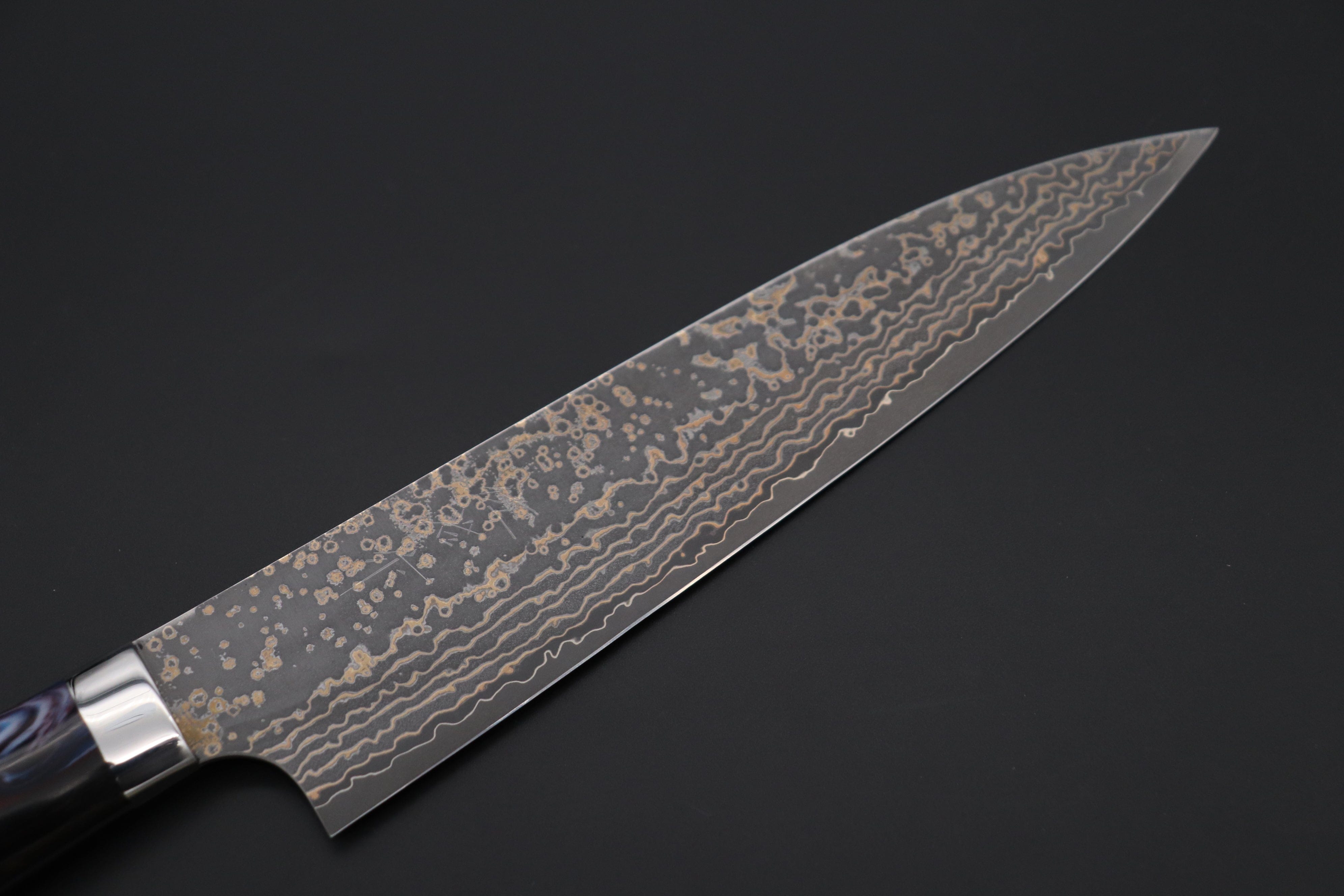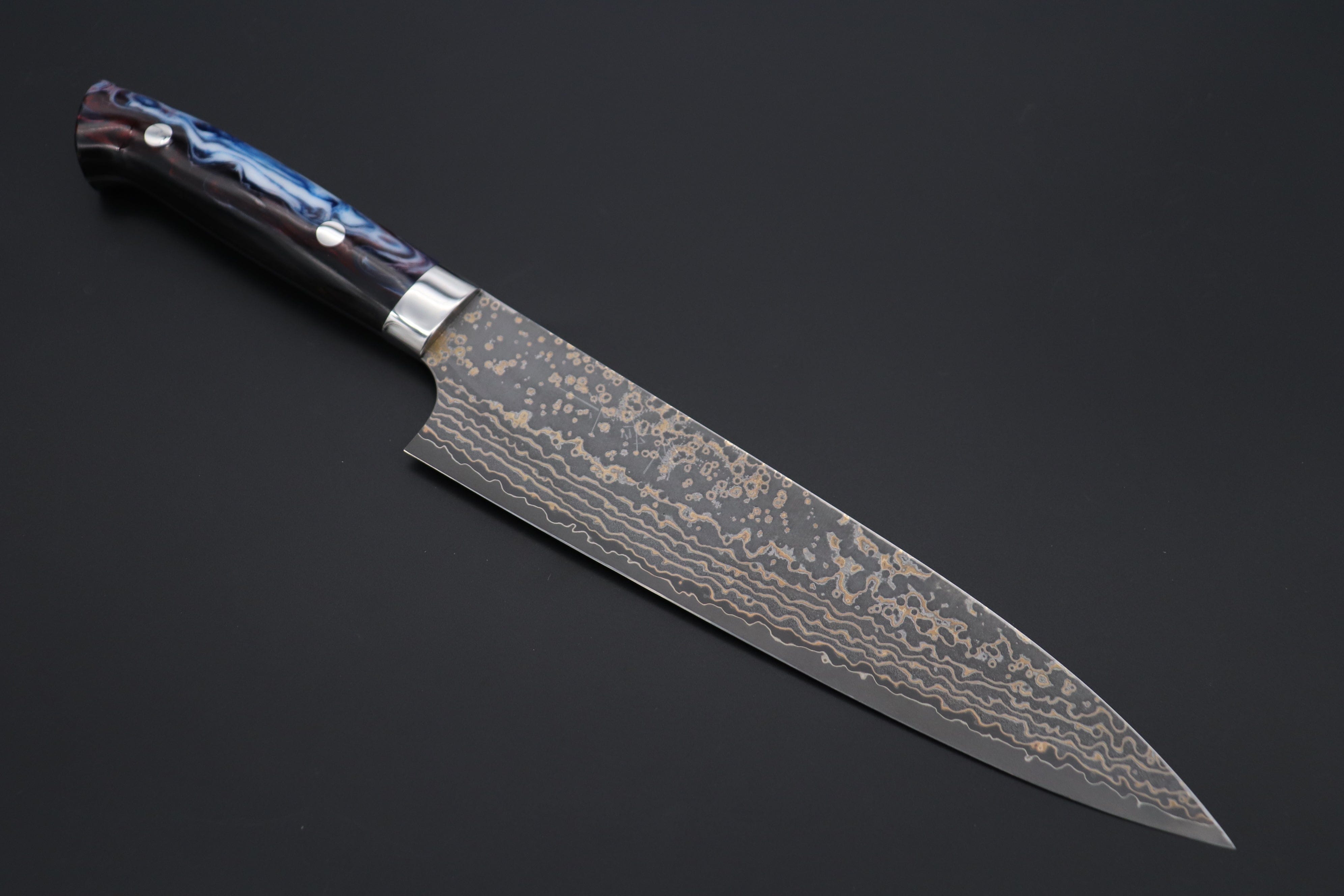 Knife Model: Takeshi Saji SUMMIT ― Limited Edition Custom Series SMT-1097 VG-10W Multi-Colored Golden-Rainbow Damascus Gyuto 210mm