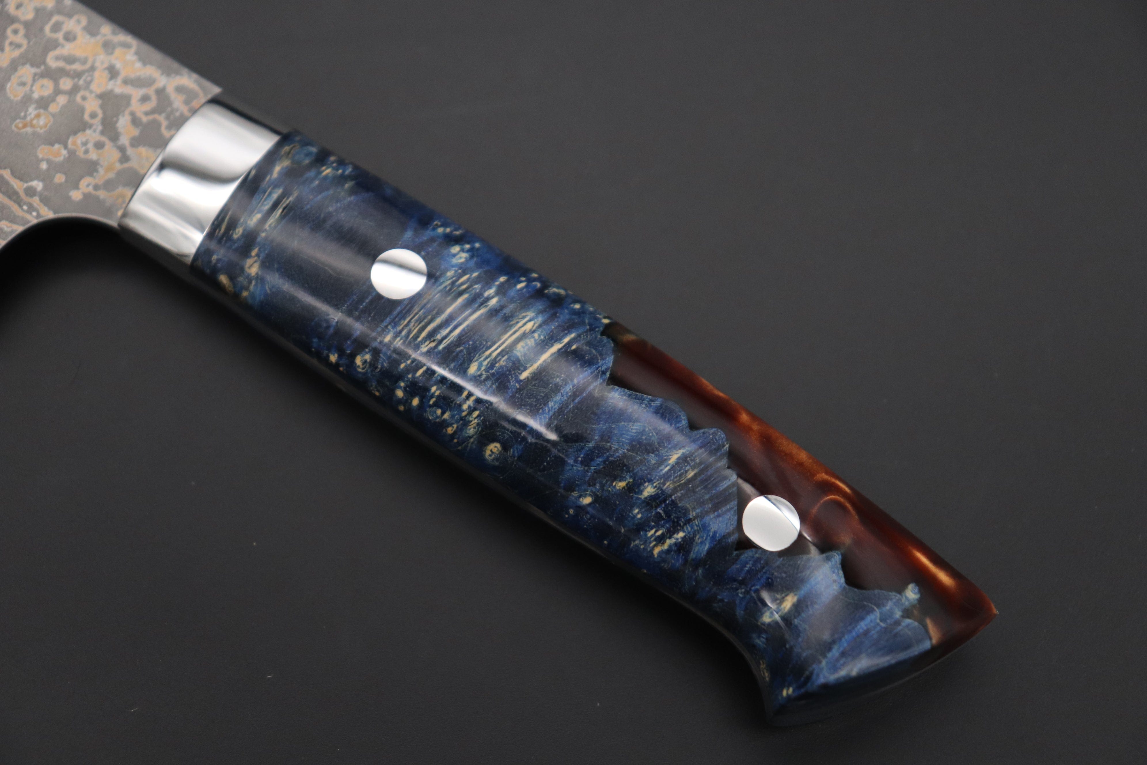 Knife Model: Takeshi Saji SUMMIT ― Limited Edition Custom Series SMT-1102 VG-10W Multi-Colored Golden-Rainbow Damascus Gyuto 210mm
