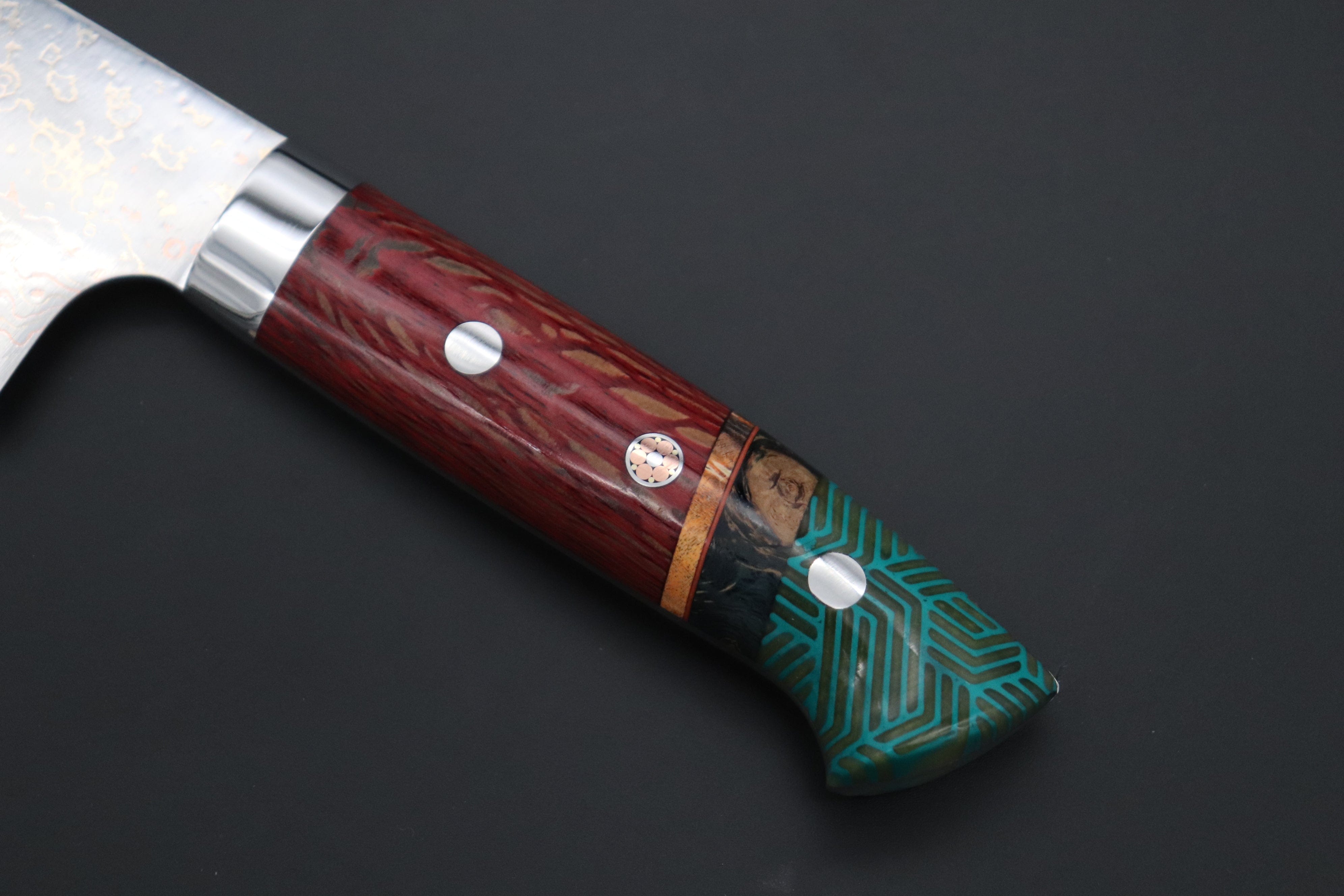 Blade Material: VG-10W Multi-Colored Golden-Rainbow Damascus