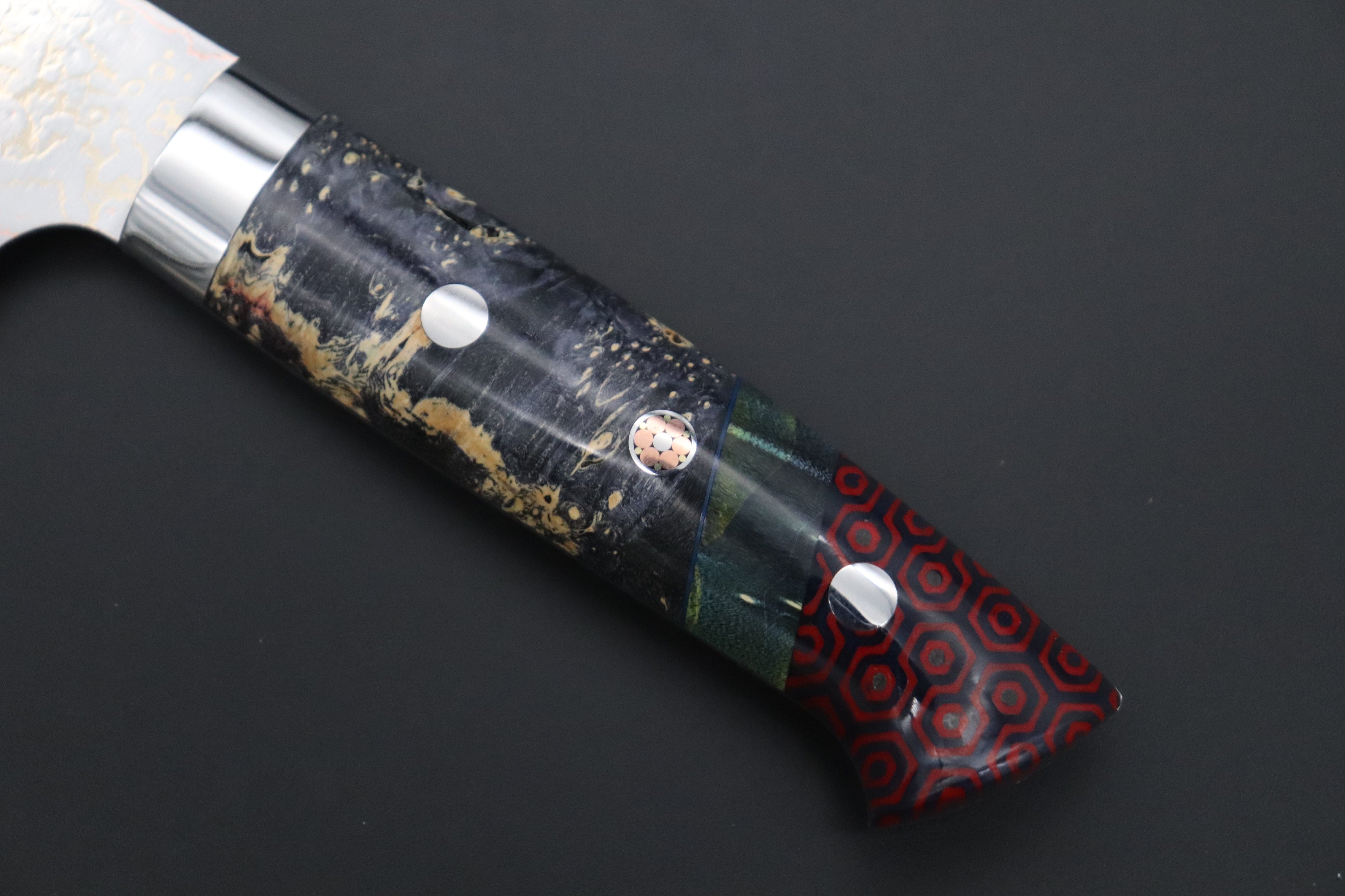 Blade Material: VG-10W Multi-Colored Golden-Rainbow Damascus