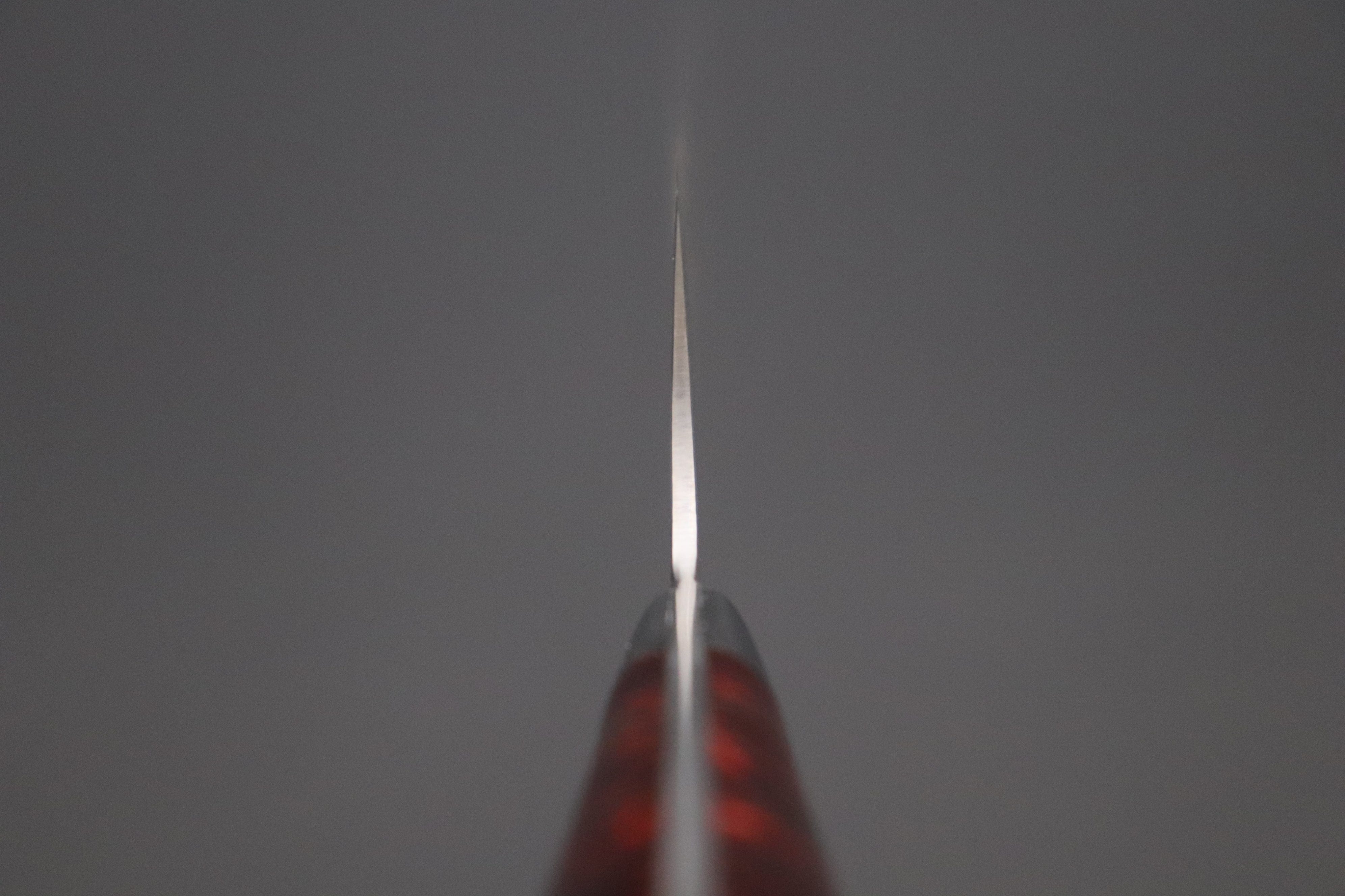The Gyuto is the Japanese version of the classic Western Chef’s knife. It can be used with a variety of different cutting techniques to achieve a wide range of kitchen tasks and is suitable for cutting the vast majority of meats, fish, vegetables and fruits. The Gyuto is true multi-purpose knife.