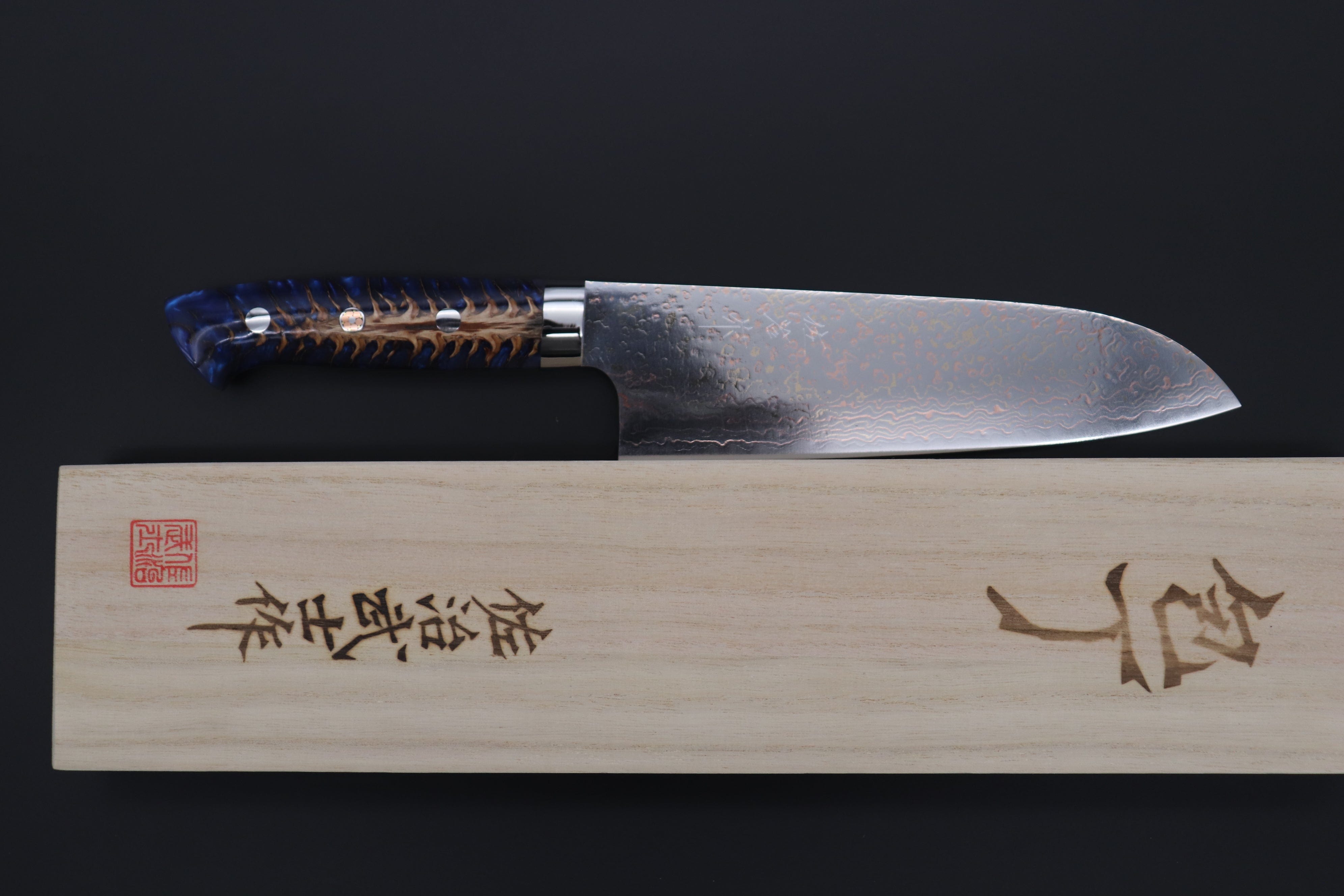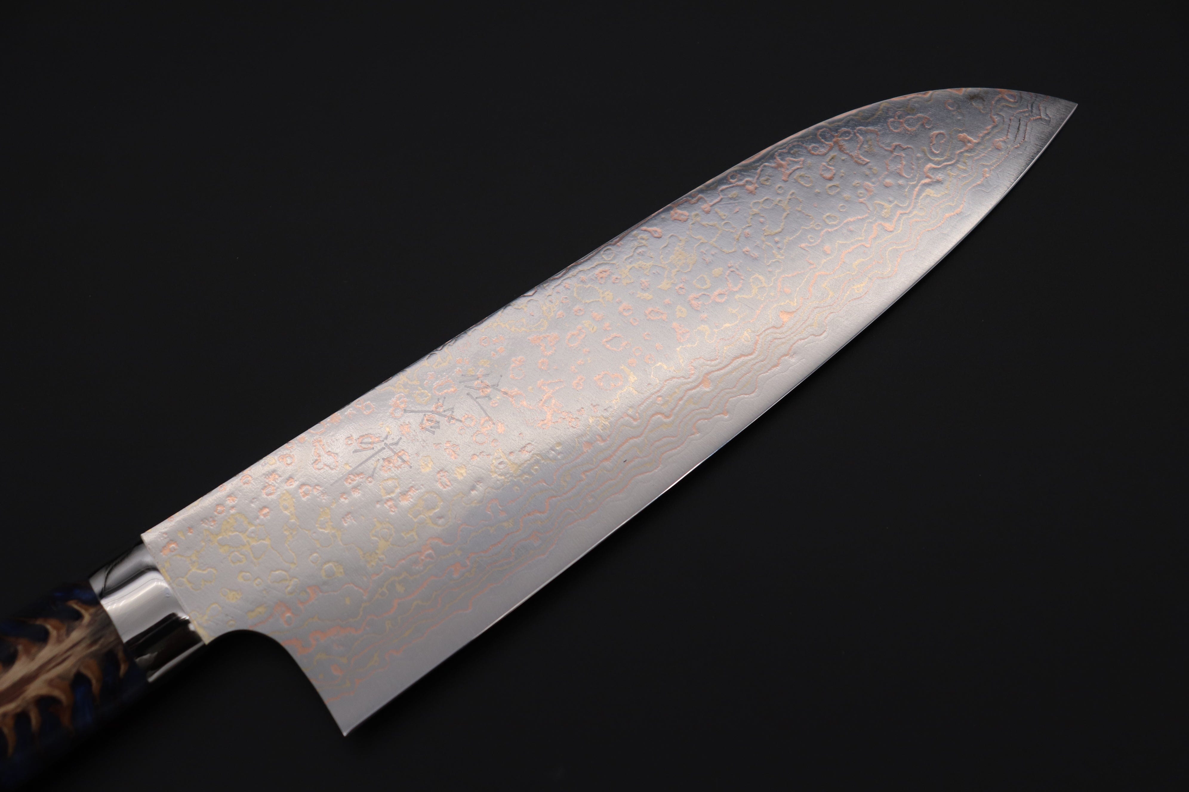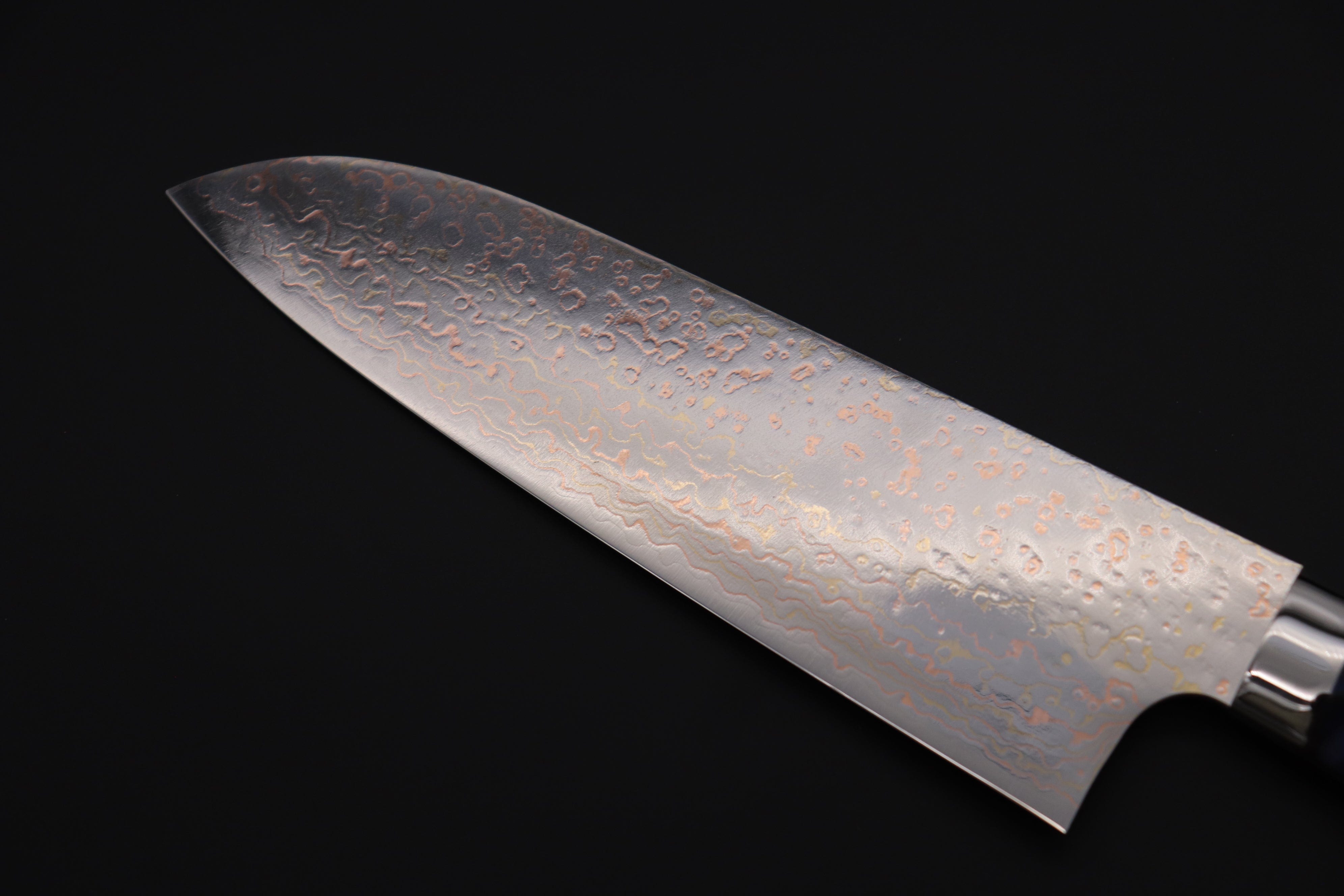 Knife Model: Takeshi Saji SUMMIT ― Limited Edition Custom Series SMT-978 VG-10W磨 Multi-Colored Golden-Rainbow Damascus Santoku 175mm