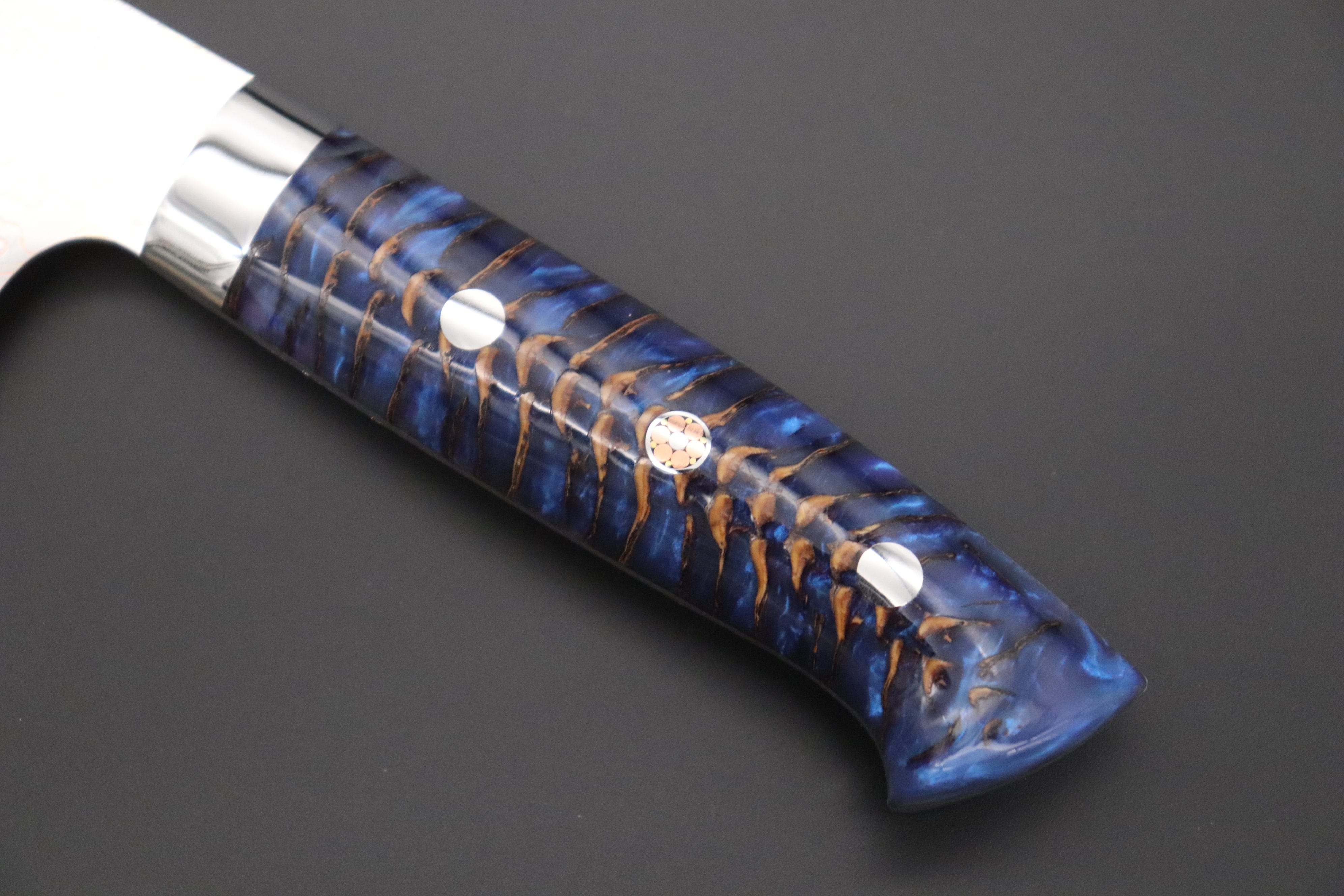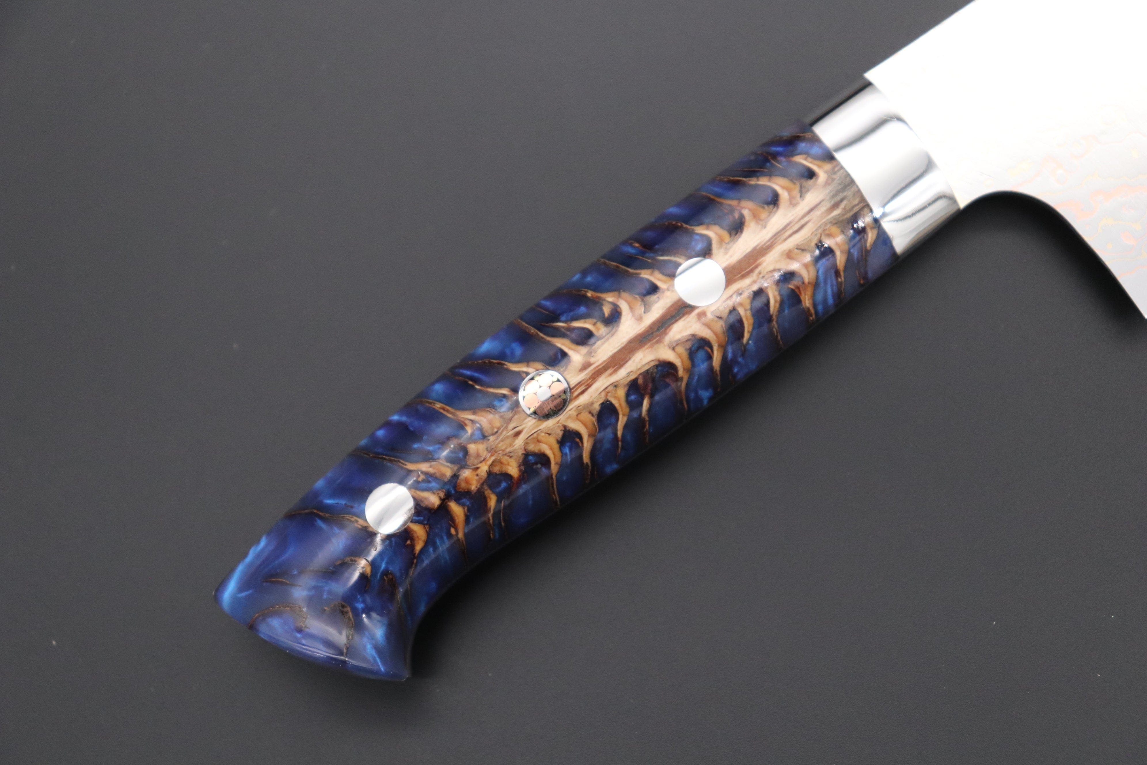 Blade Material: VG-10W Multi-Colored Golden-Rainbow Damascus