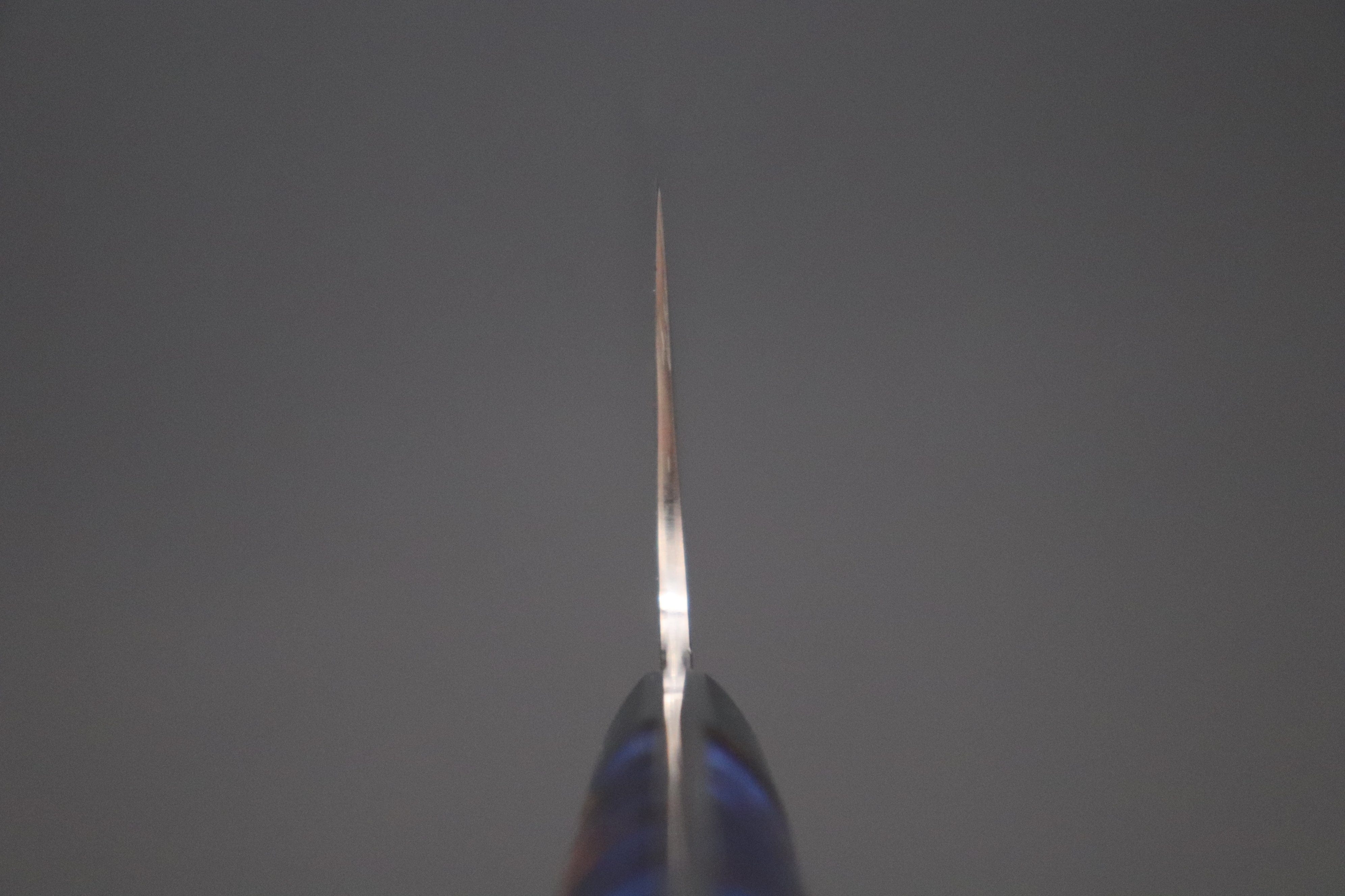 For your information, Japanese Kitchen knives are generally designed for right hand use with a slightly thicker and rounded grinding on the right side blade and a less rounded (almost straight flat) grinding on the left side blade. However, both right and left hander can use the knives that have double bevel edge sharpened 50/50 without problems.