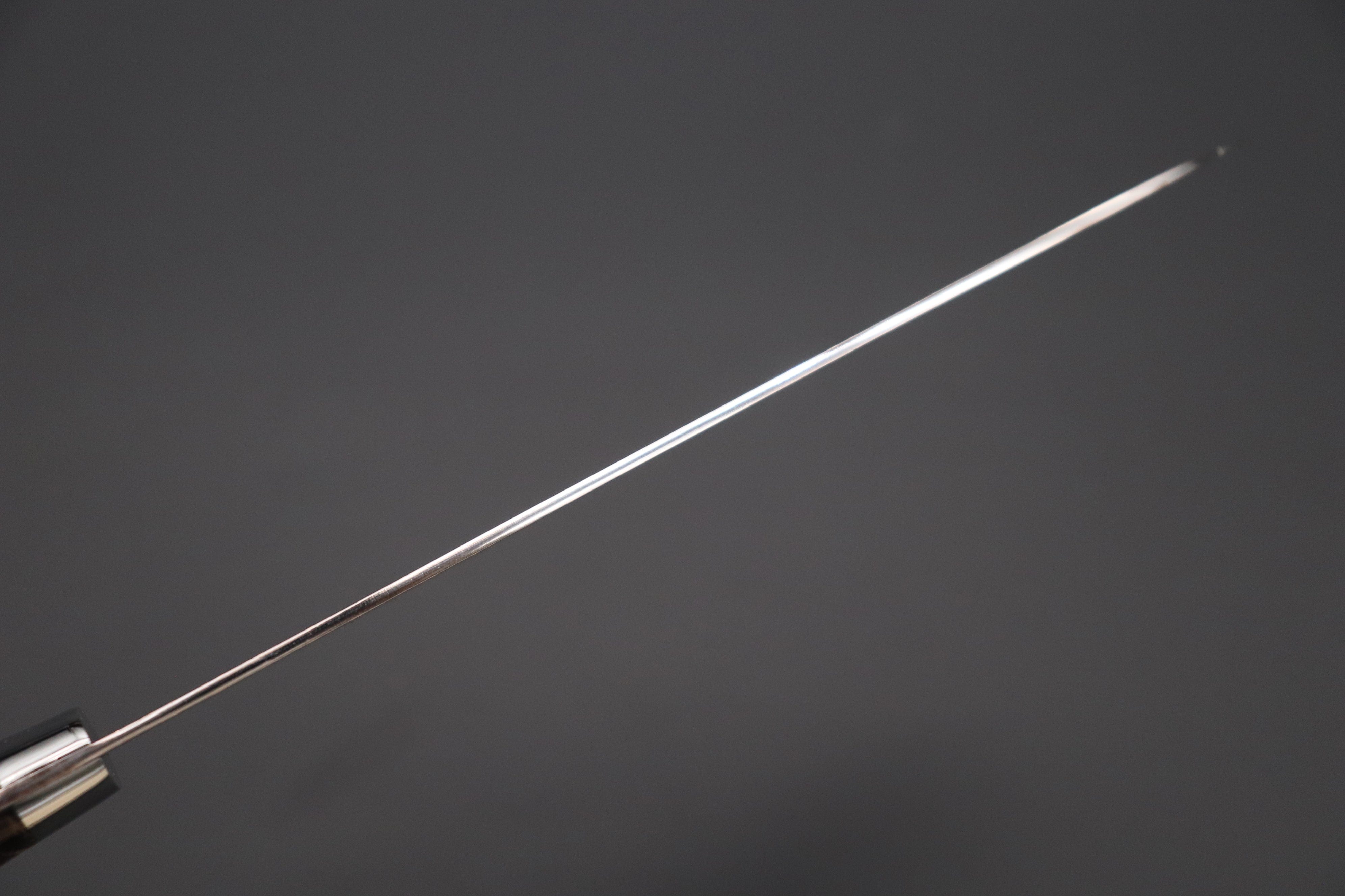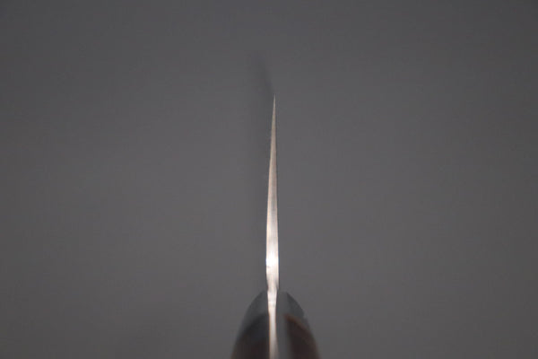 Takeshi Saji is a very well respected Master Smith, who specializes in making traditional hammer forged Japanese knives. We are often surprised by the variety of ideas he has and the very distinctive materials and rare steel that he uses for his custom knives.