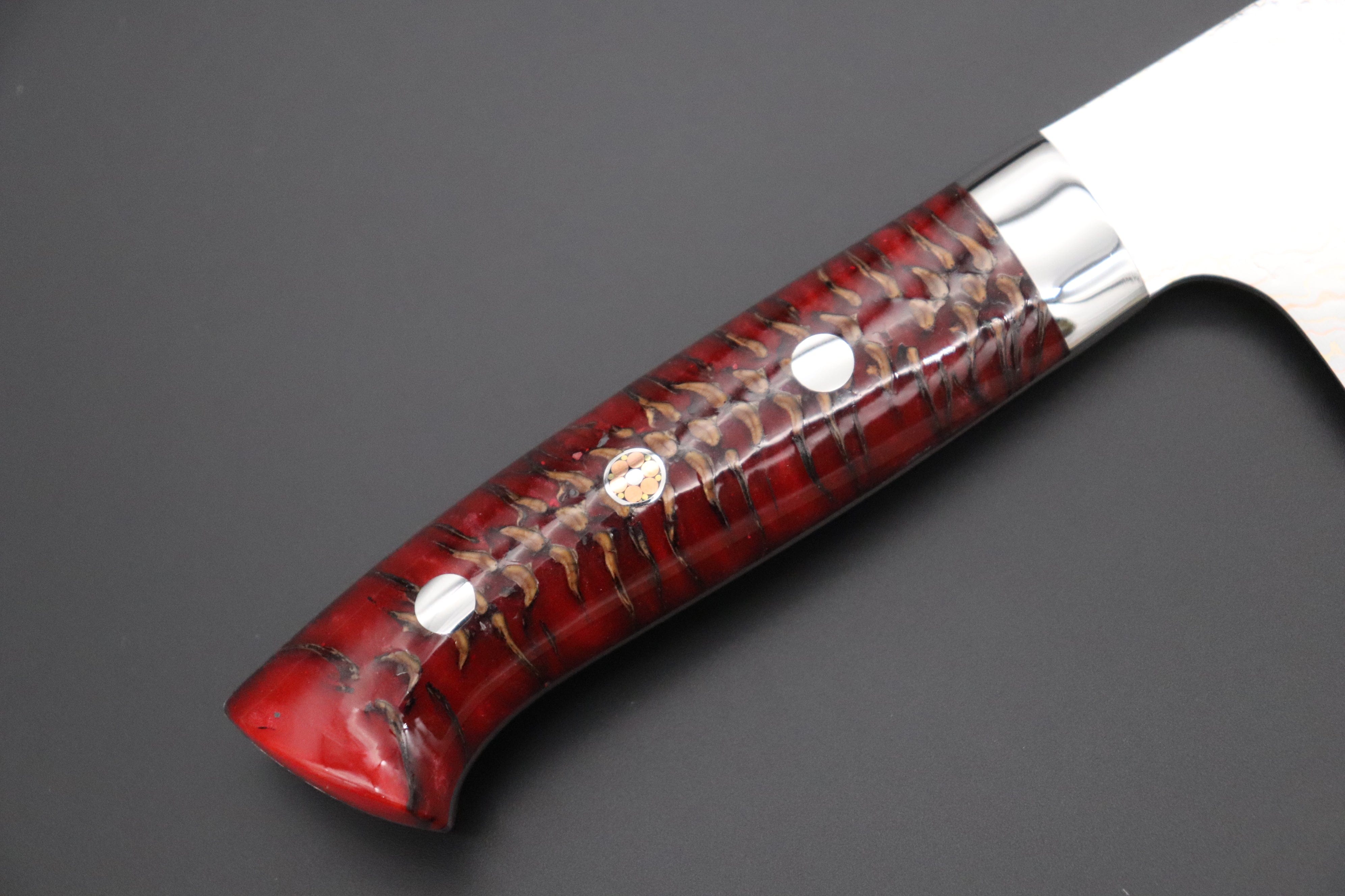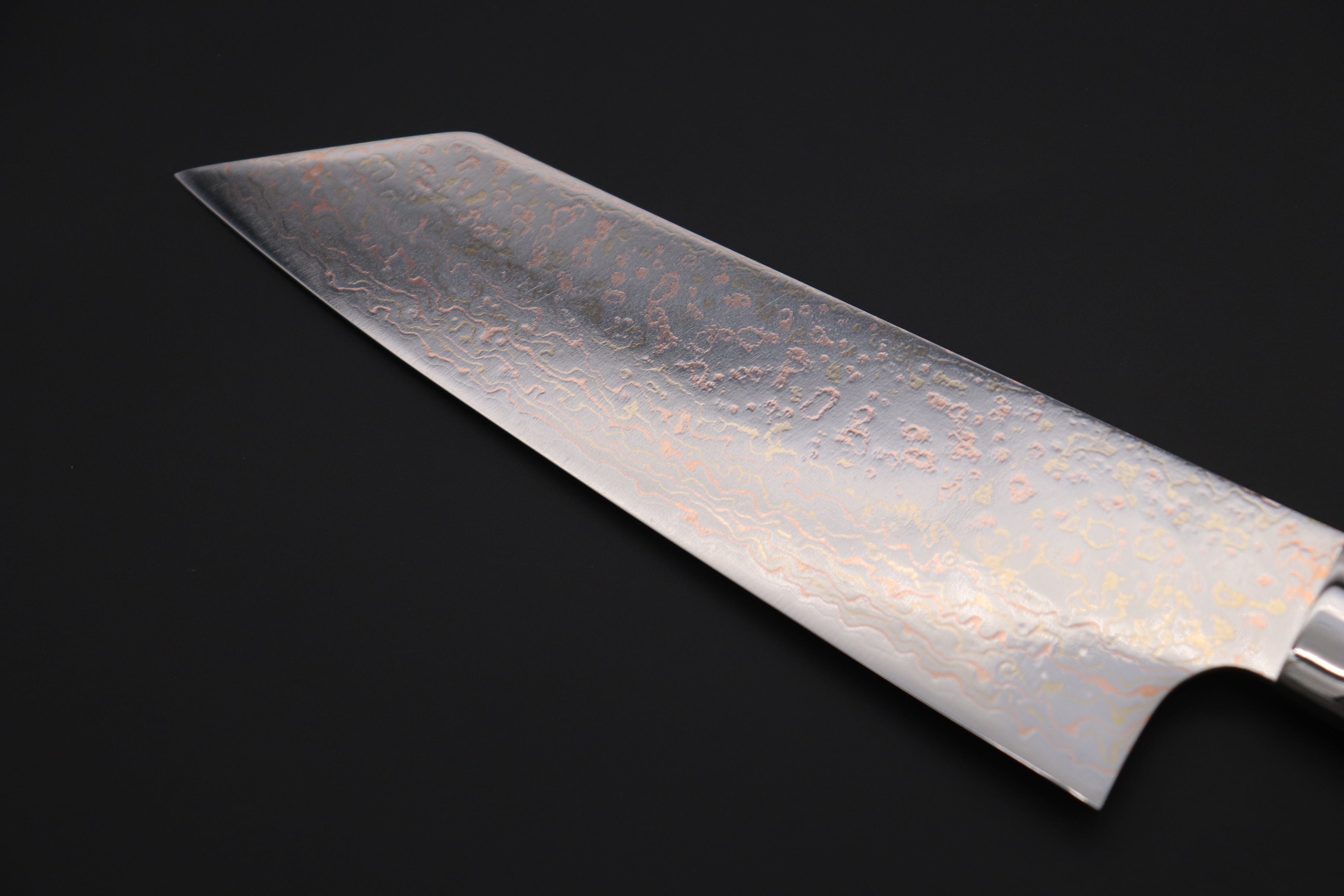Knife Model: Takeshi Saji SUMMIT ― Limited Edition Custom Series SMT-985 VG-10W磨 Multi-Colored Golden-Rainbow Damascus Bunka 175mm