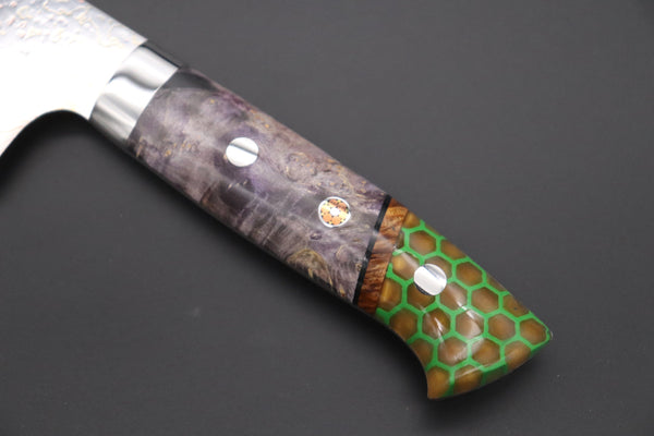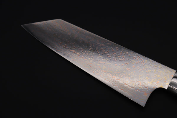 Knife Model: Takeshi Saji SUMMIT ― Limited Edition Custom Series SMT-988 VG-10W磨 Multi-Colored Golden-Rainbow Damascus Bunka 175mm
