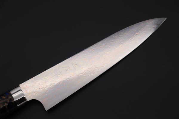 Knife Model: Takeshi Saji SUMMIT ― Limited Edition Custom Series SMT-994 VG-10W Multi-Colored Golden-Rainbow Damascus Gyuto 180mm
