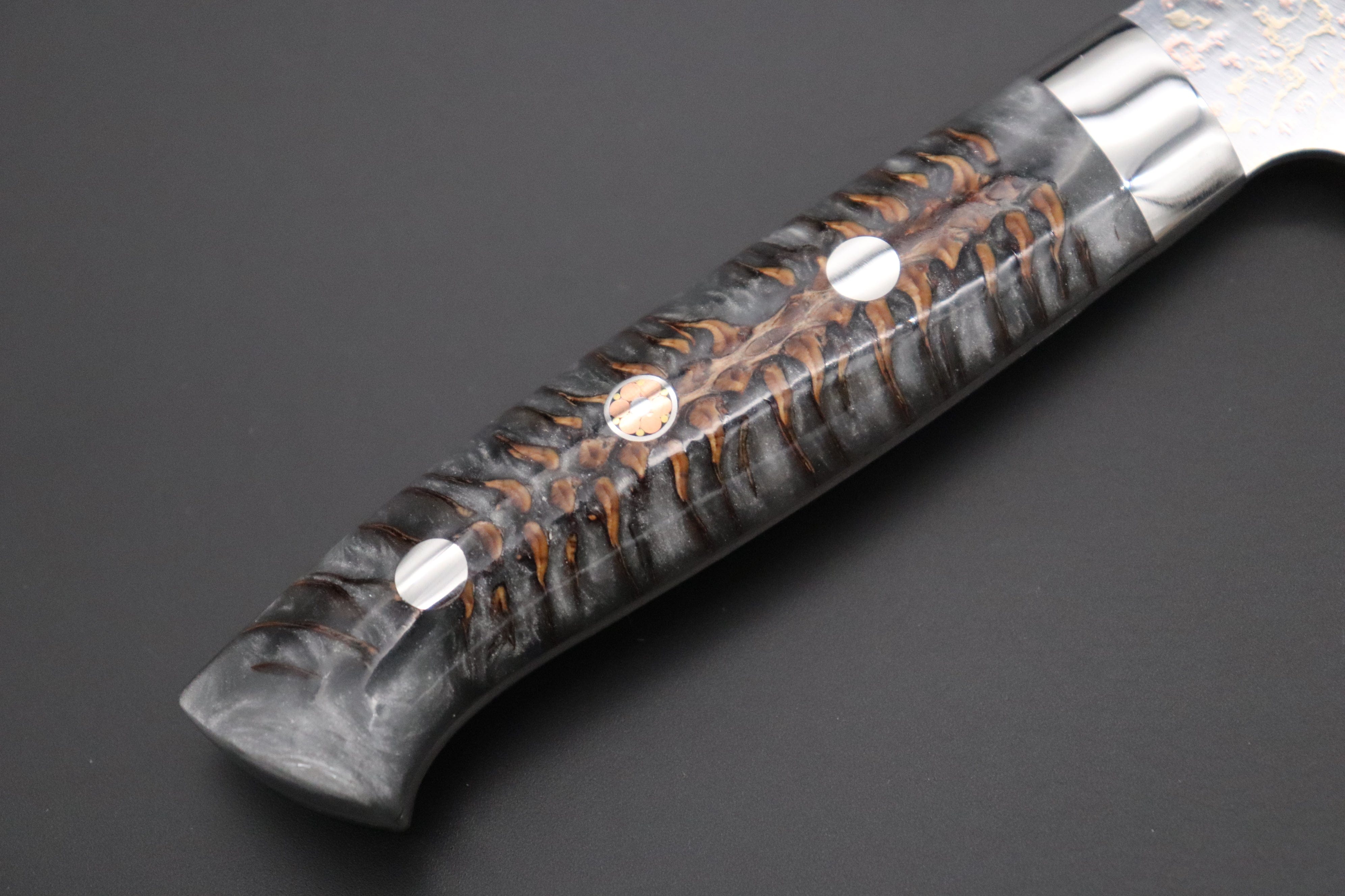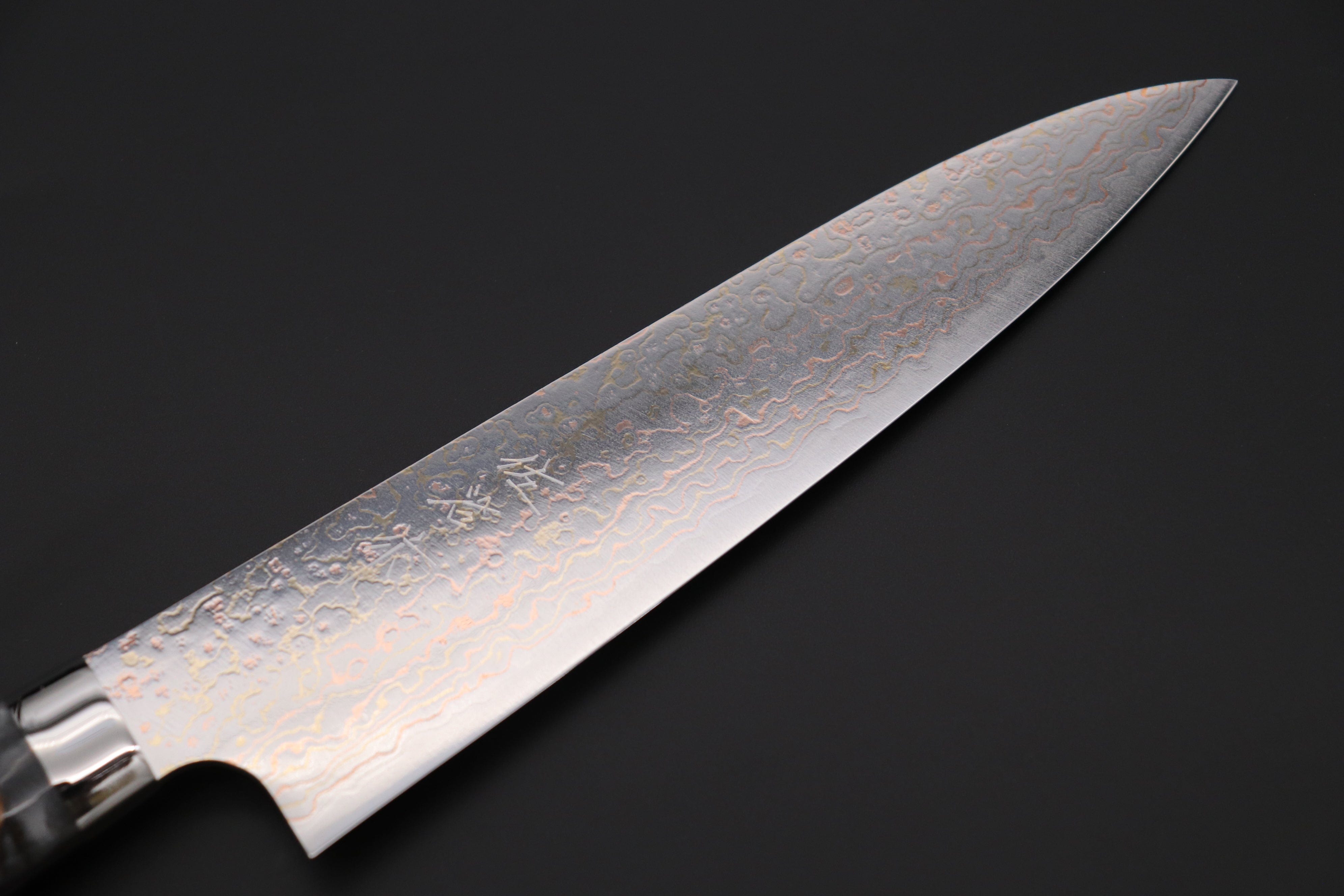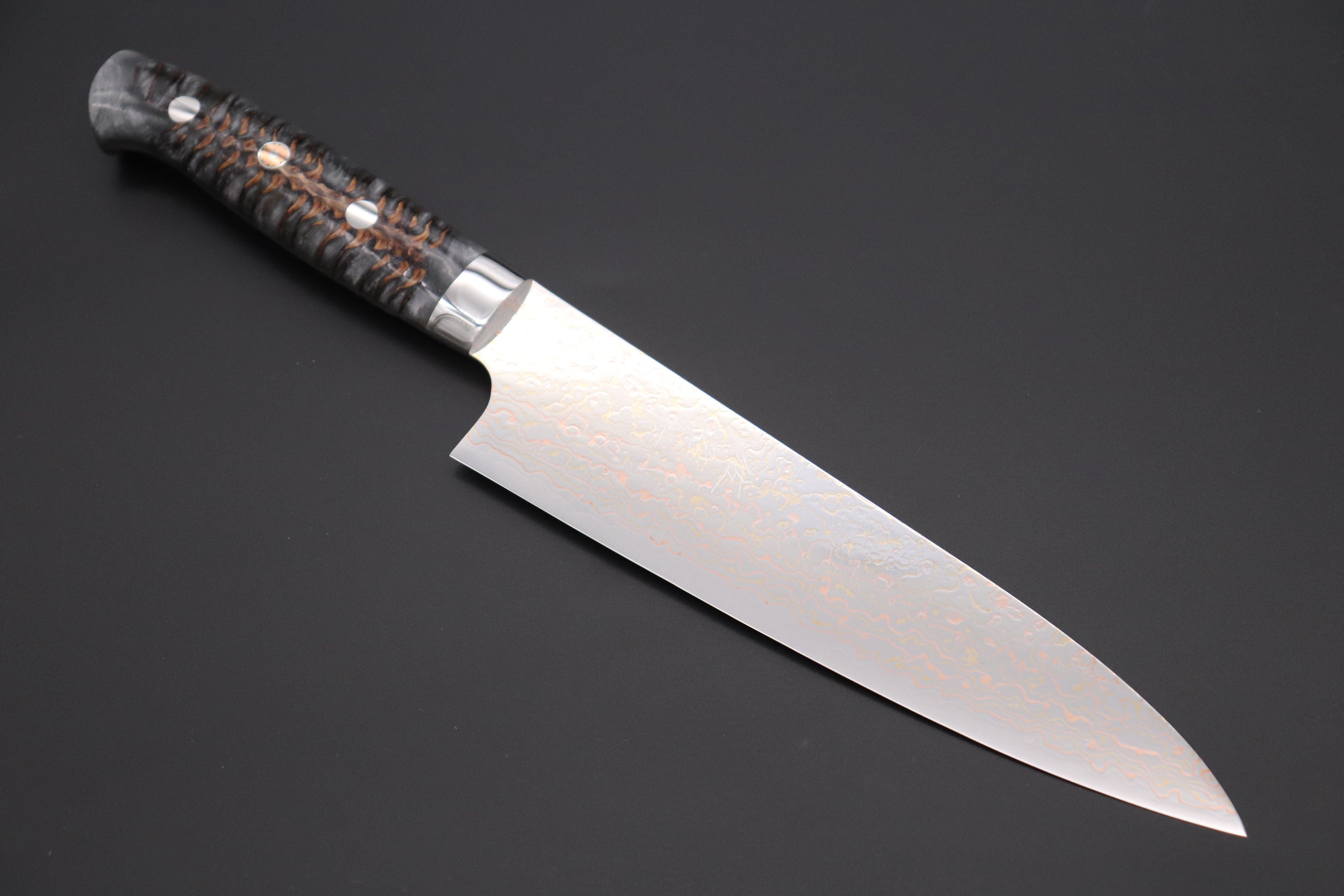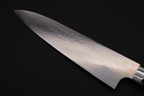 Knife Model: Takeshi Saji SUMMIT ― Limited Edition Custom Series SMT-996 VG-10W Multi-Colored Golden-Rainbow Damascus Gyuto 180mm